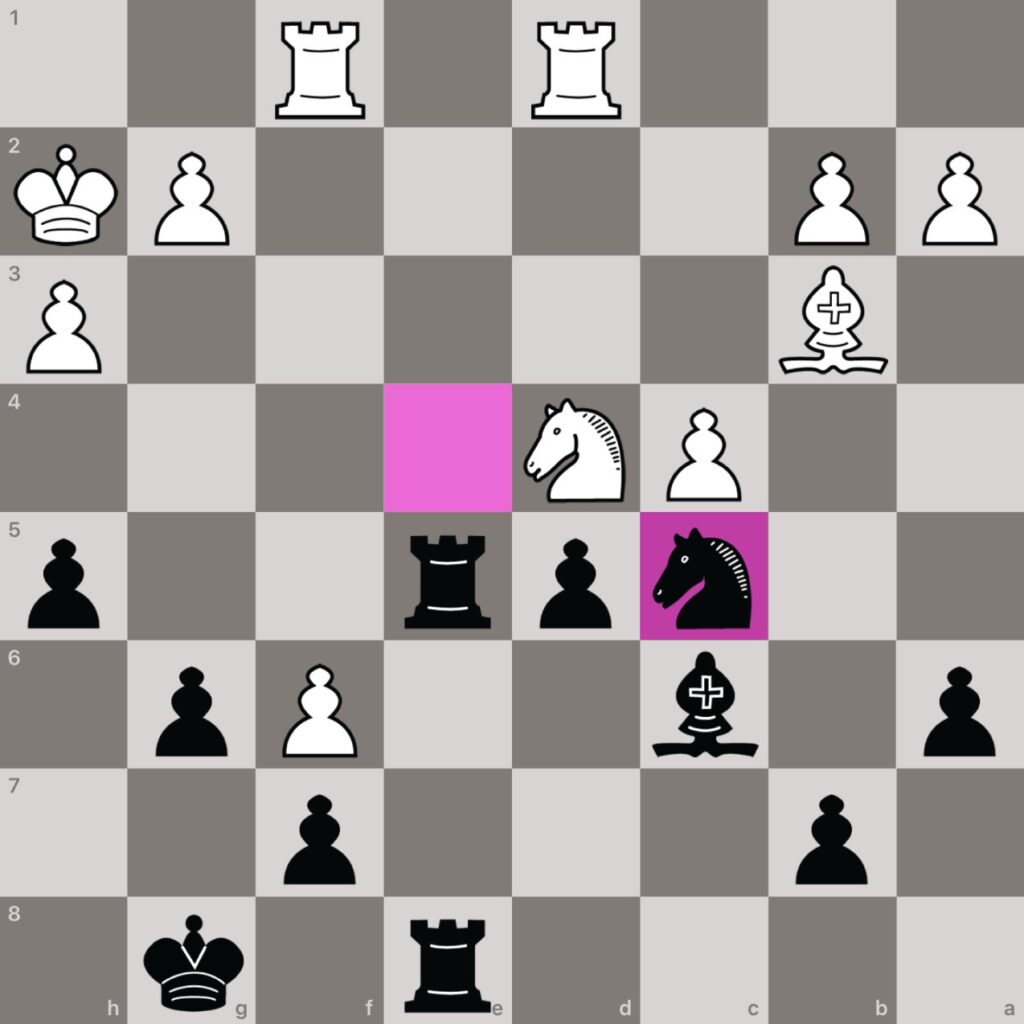 19.Nxg6 fxg6  20.Nxe4 Rxe4